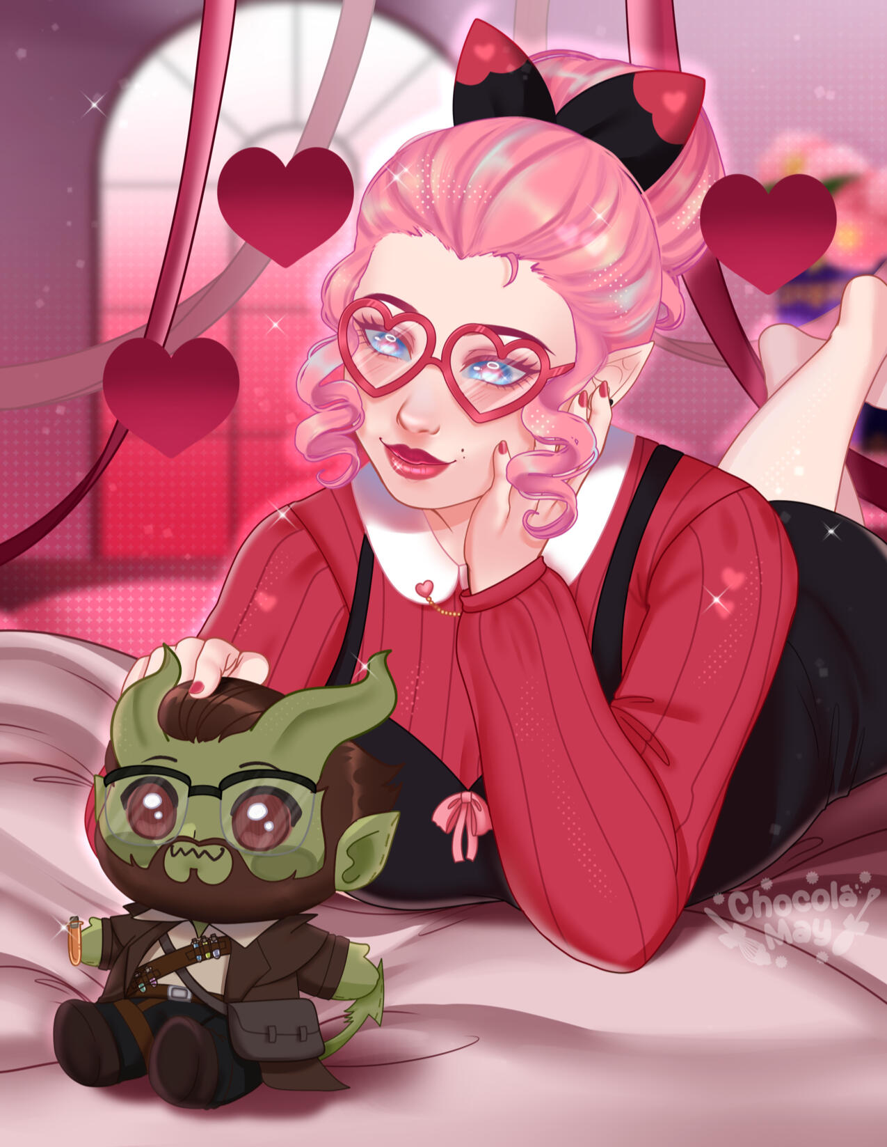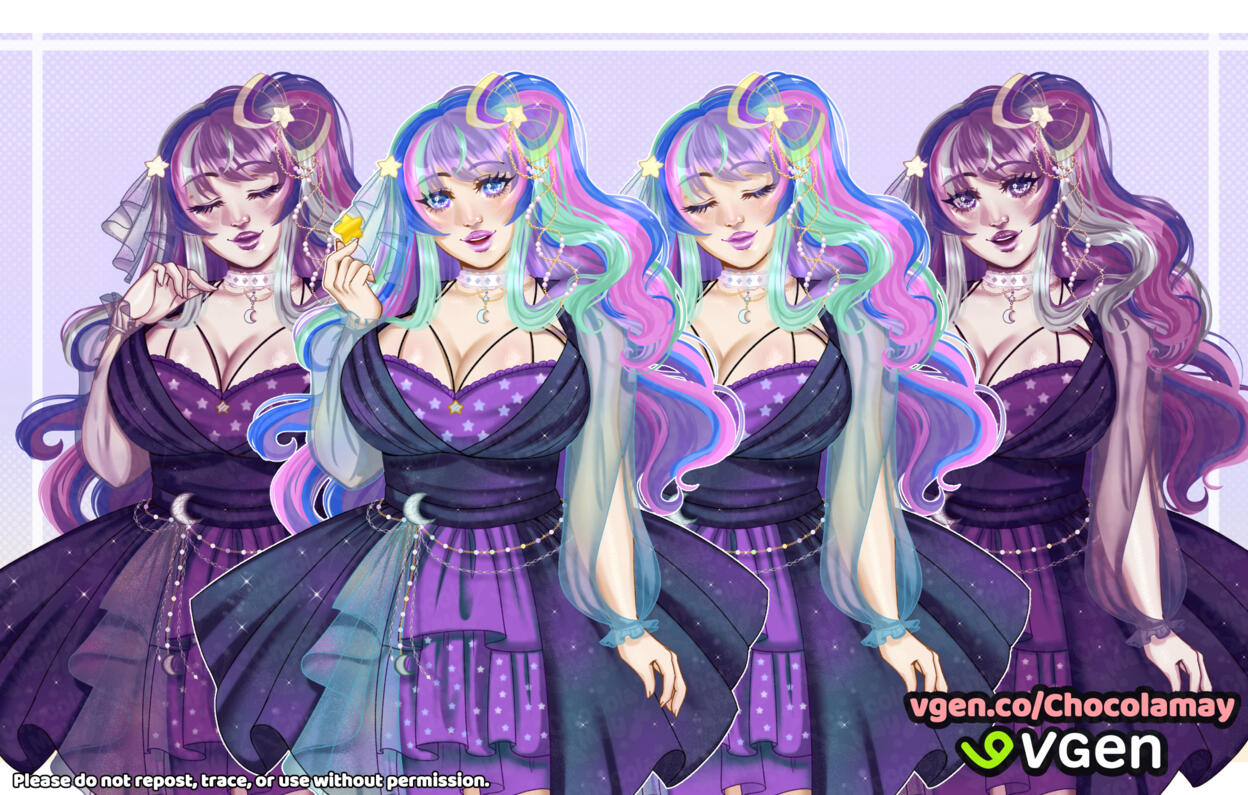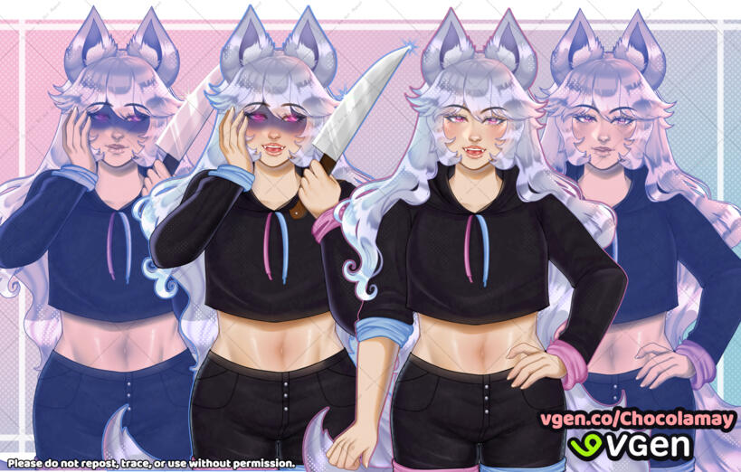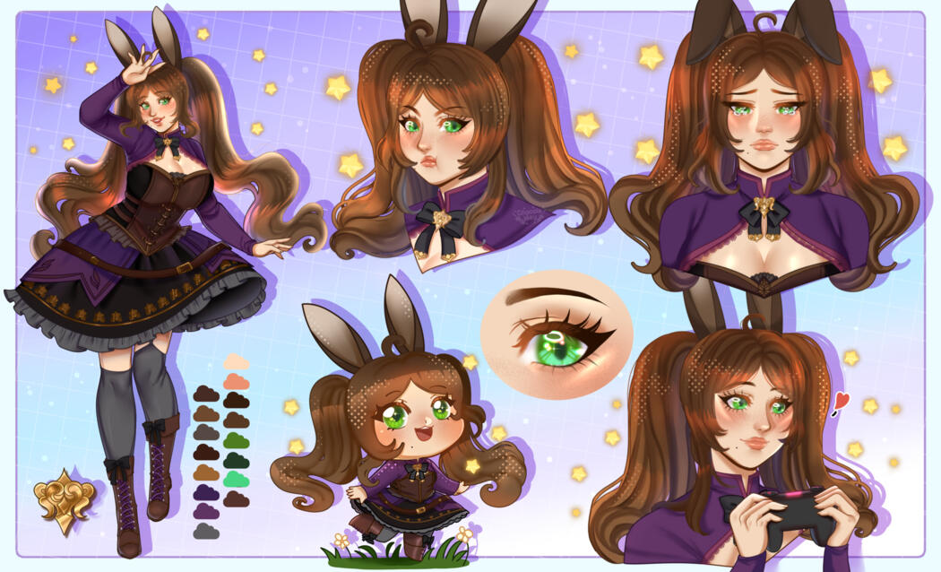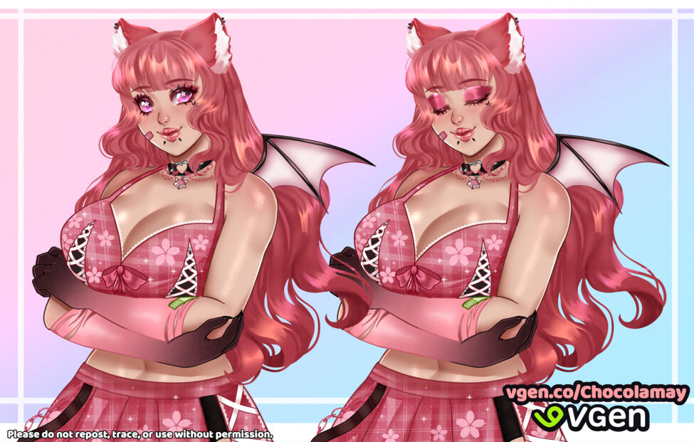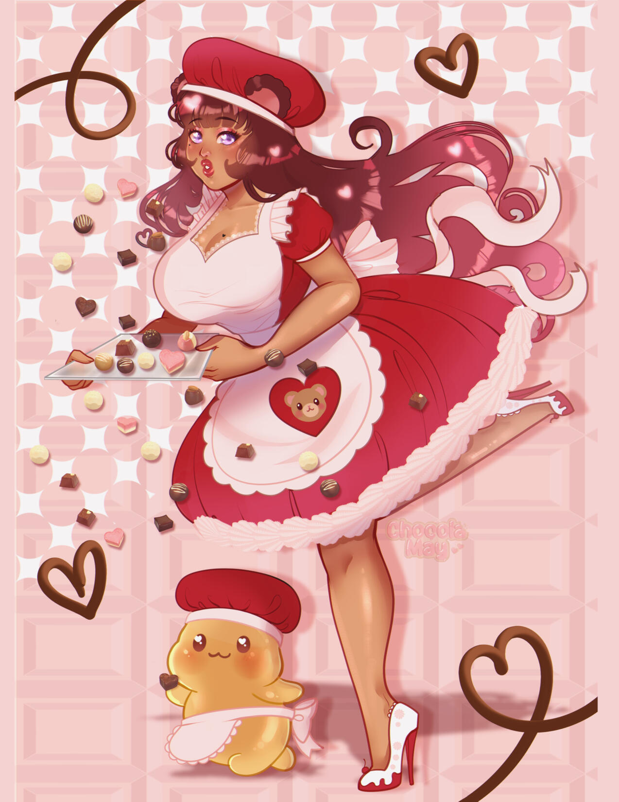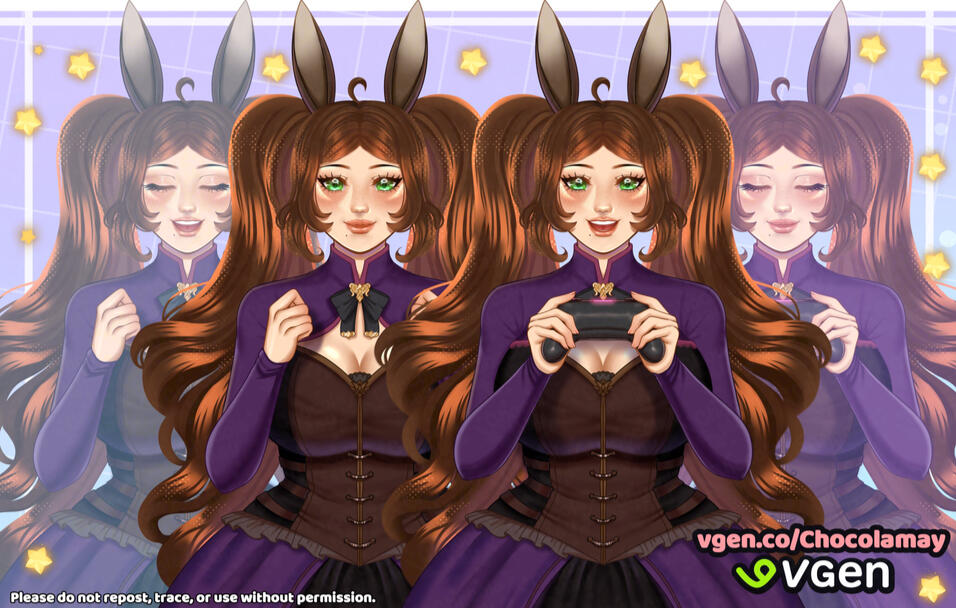 Chocola May is my pen name as well as my artist and vtuber persona! Below you can find examples of artwork as well as her model appearance on stream.
